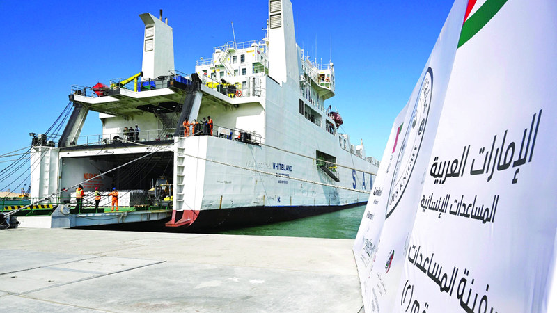 ونهاية الأسبوع الماضي وصلت السفينة الإماراتية الإنسانية إلى ميناء العريش المصري محمّلة بـ7,200 طن من المواد الغذائية والإيوائية والطبية، تمهيداً لنقلها إلى قطاع غزة. وتأتي هذه السفينة ضمن سلسلة من المبادرات الإنسانية التي تنفذها دولة الإمارات ضمن جسرها الإنساني المتواصل لدعم الشعب الفلسطيني، بما يعكس التزامها الراسخ بنهجها الإنساني الثابت والمستدام في دعم القضايا العادلة ومساندة المتضررين حول العالم.