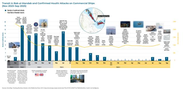 ويُعزّز هذا الشعور بالقلق أن التوقف عن الهجمات لم يأتِ نتيجة تفاهمات سياسية أو ضمانات أمنية، بل بسبب عوامل ظرفية مرتبطة بتقلبات الصراع الإقليمي. إذ يوضح المعهد أن الحوثيين أعلنوا بصراحة استعدادهم لاستئناف "العمليات البحرية" فوراً إذا دخلت غزة في مرحلة تصعيد جديدة، ما يعكس ترابط القرار العسكري للجماعة مع مسارات الأزمة الإقليمية وليس مع أي التزامات أو ضغوط دولية.